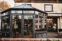"This place is perfect for meeting up with a friend to have coffee or hot chocolate and a treat. I tried a hot chocolate and cinnamon bun and they were both delicious! They also have sandwiches and soups, as well as a fridge with soups that you can purchase and take home with you. The staff were super friendly and you can't beat the prices. I will absolutely be back."